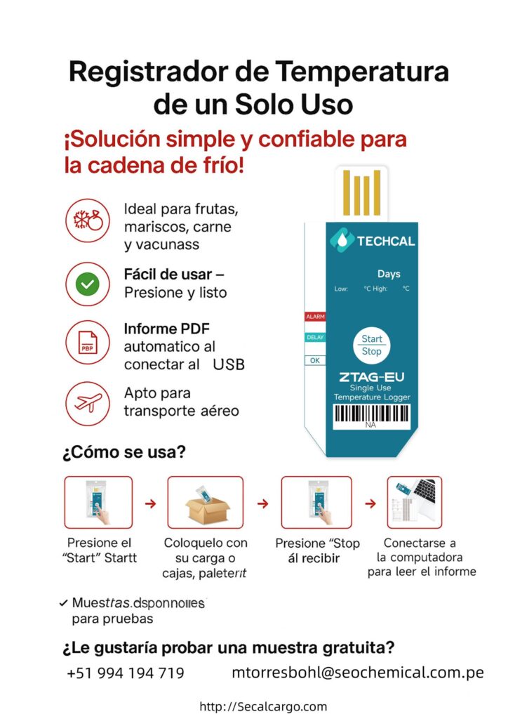 Ideal para monitorear datos de temperatura en contenedores y transporte.