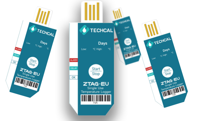 Techcal ZTAG-EU, un registrador de datos electrónico de comunicación de campo cercano (USB) es un dispositivo versátil adecuado para transportes marítimos, kits de ensayos clínicos, envíos de verduras, frutas, carnes, dispositivos médicos y vacunas.